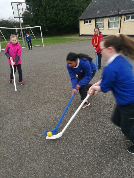 This week for P.E., fifth and sixth class played Uni-Hoc. There was some really exciting games and some great goals scored.