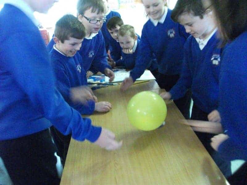 We were very busy in Science this week and we made our own hovercrafts. We used balloons and old CD’s. Our crafts hovered on a cushion of air from the balloons. We were able to play air hockey on our tables with the crafts. The trick was to make the connection between the bottle top and the CD airtight. Some groups did not manage this and had to repair their craft. We used lots of sellotape ! The trick was to put it in the right place too ! We used water bottle valves to control the flow of air from the balloon. The craft hovered really well and they were good fun to make.