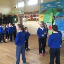 Ms Cawley teaches First and Second Classes. There are 21 children in her classroom, 10 in First Class and 11 in Second Class. Ms. Lambe and Suzanne come in to help us during the day.